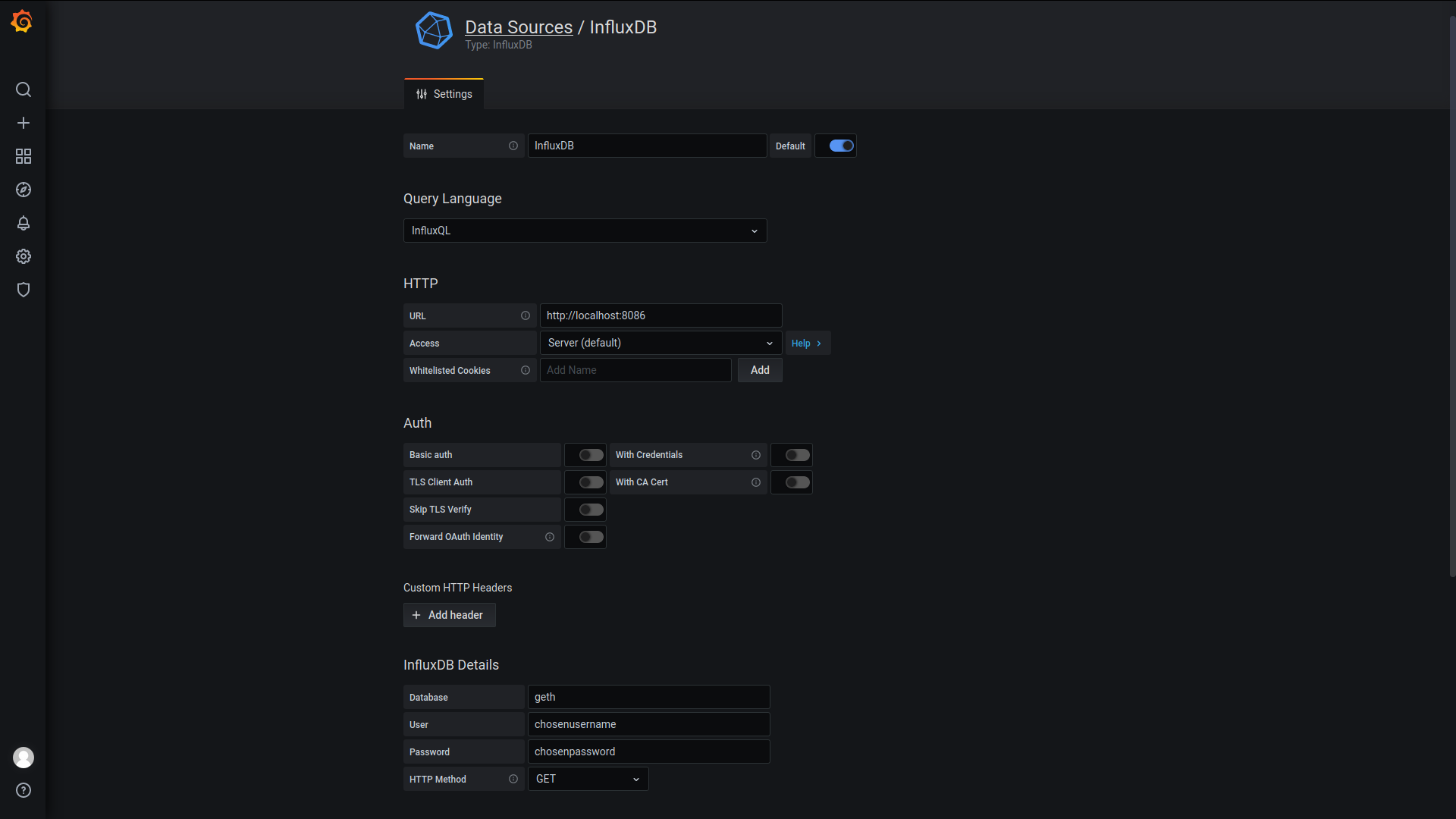 In this tutorial, we'll set up your Geth client to push data to InfluxDB to create a database and Grafana to create a graph visualisation of the data. Doing it manually will help you understand the process better, alter it, and deploy in different environments.